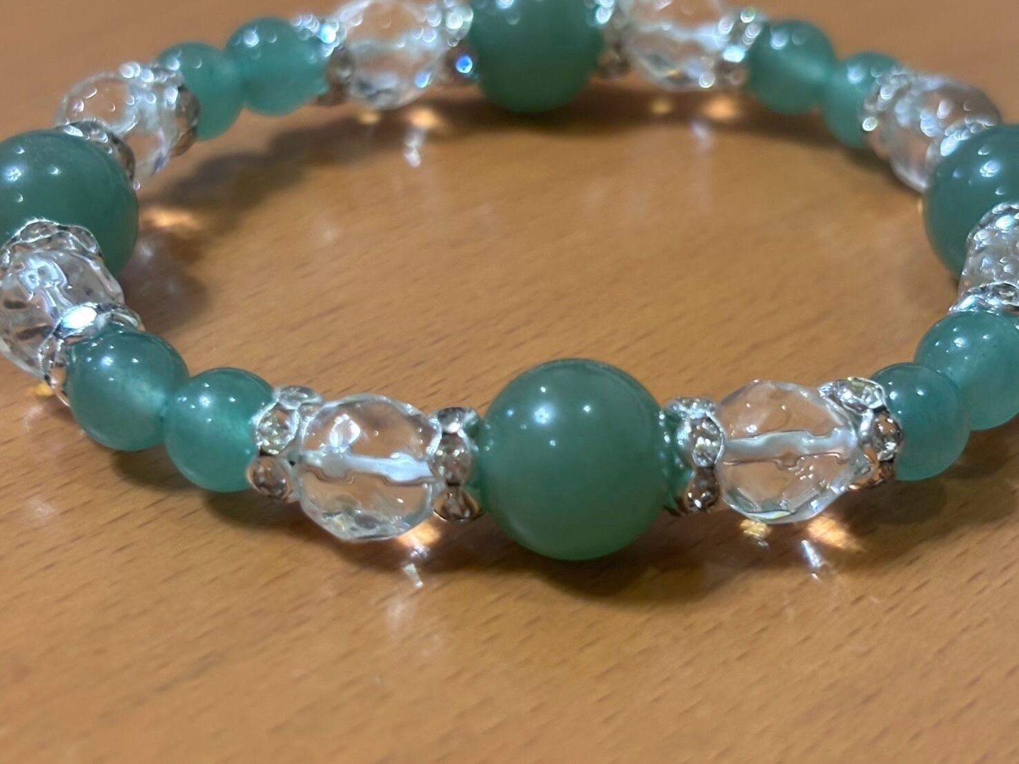 深みのあるグリーンが美しいアベンチュリンと、透明感のある水晶を組み合わせ、