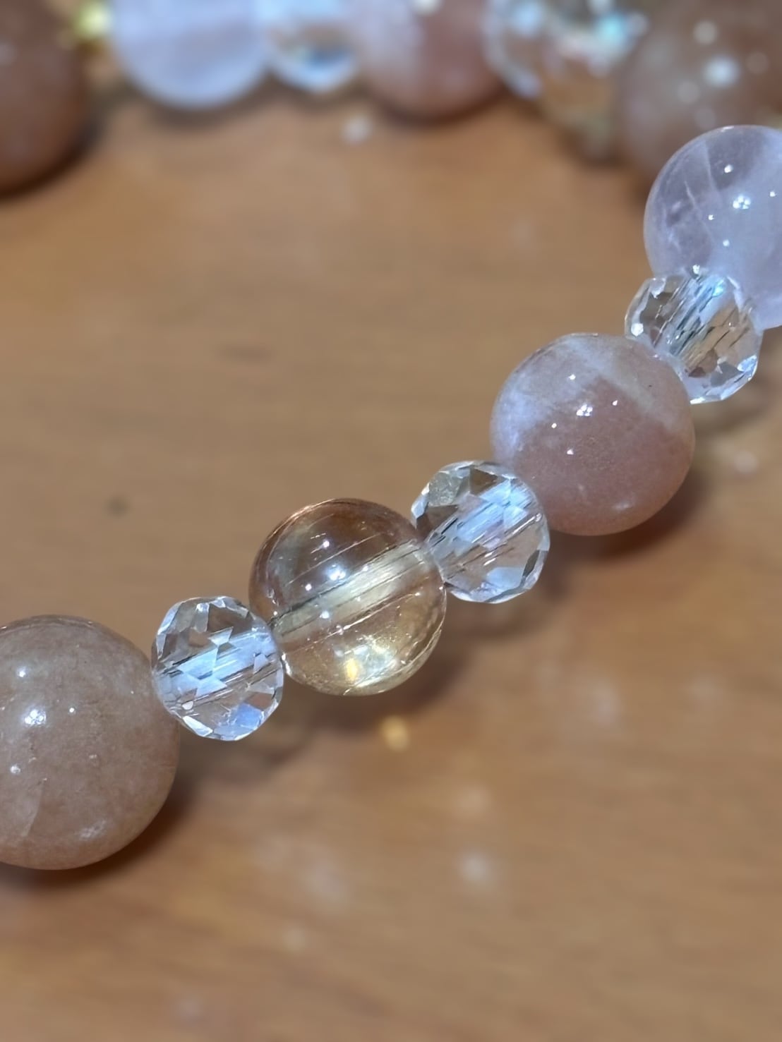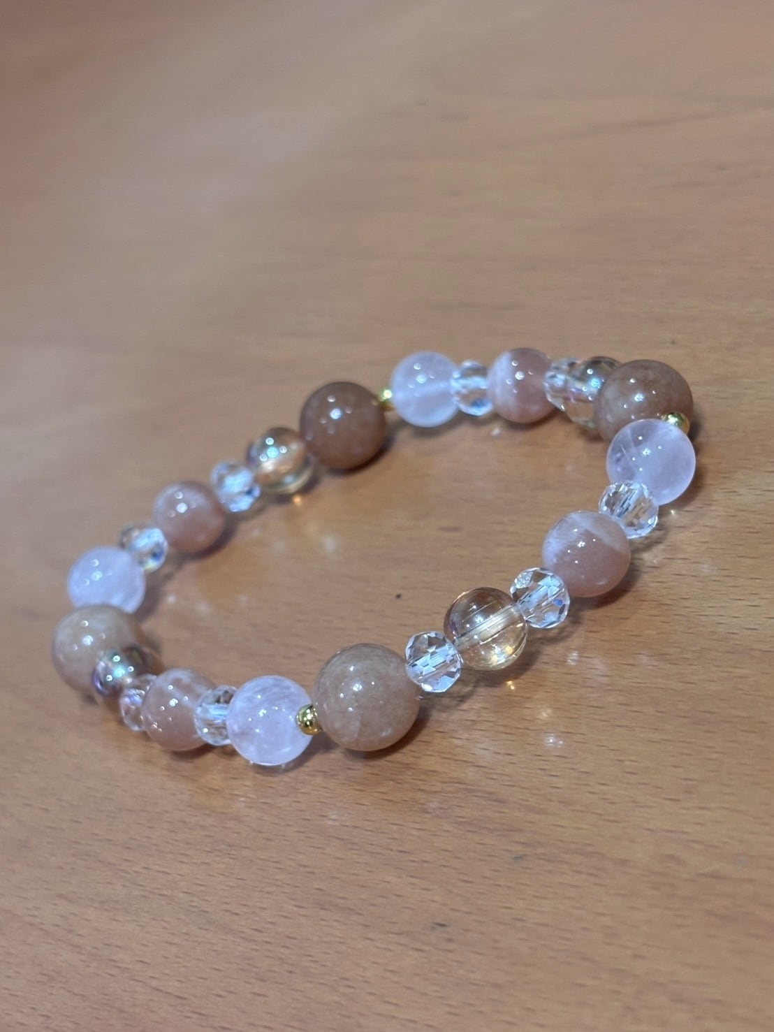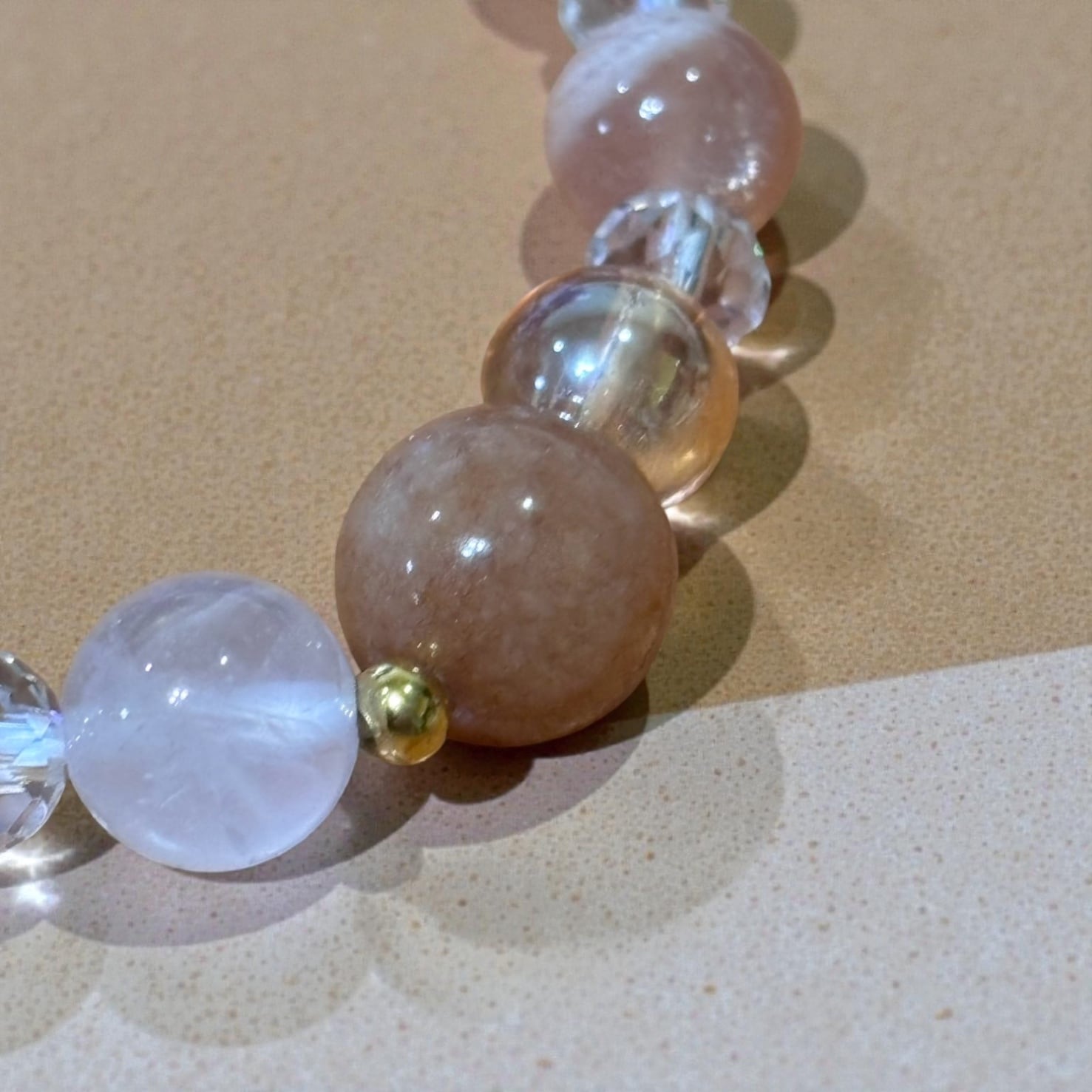 そっと背中を押してくれる サンストーンを中心に、やさしさを象徴するローズクォーツ、