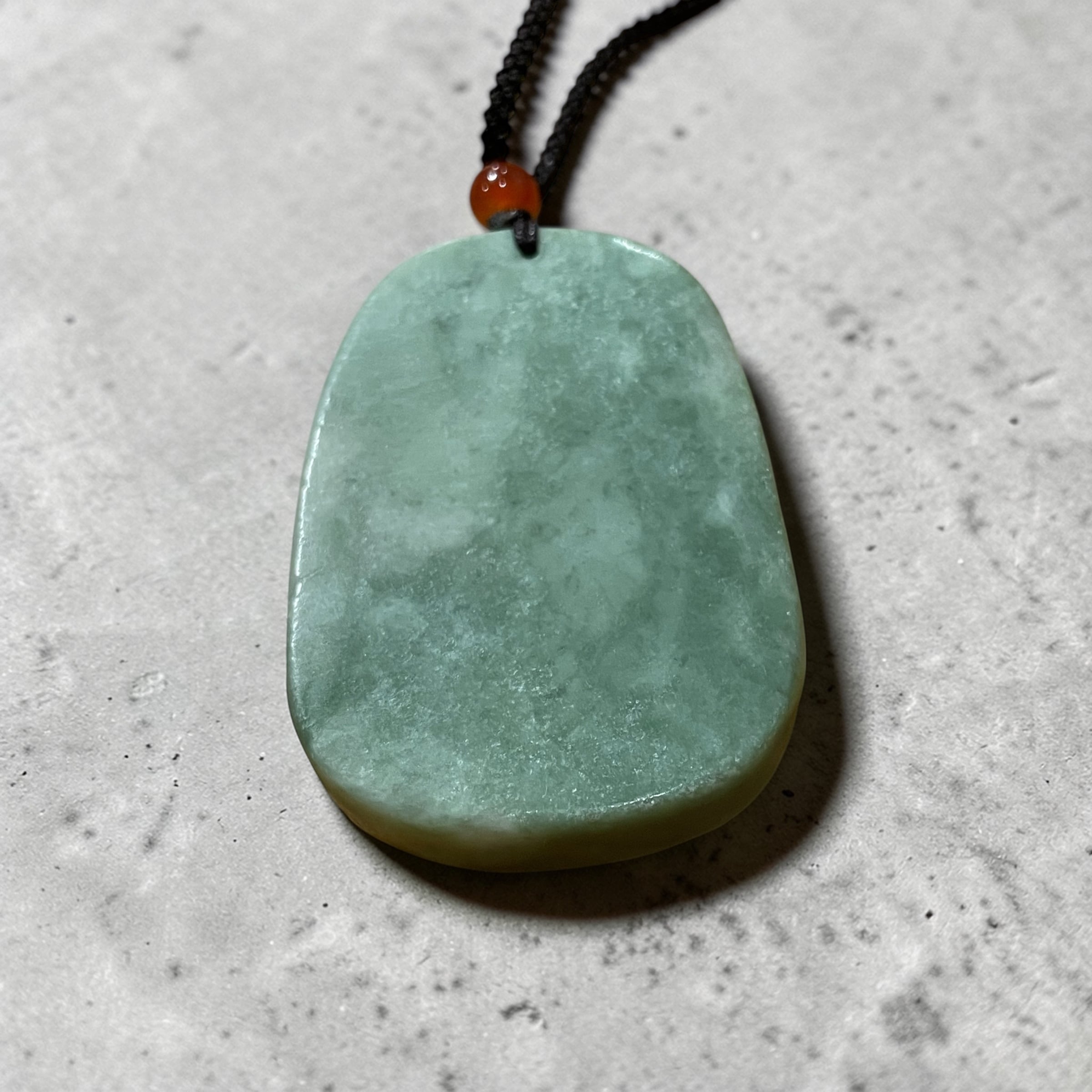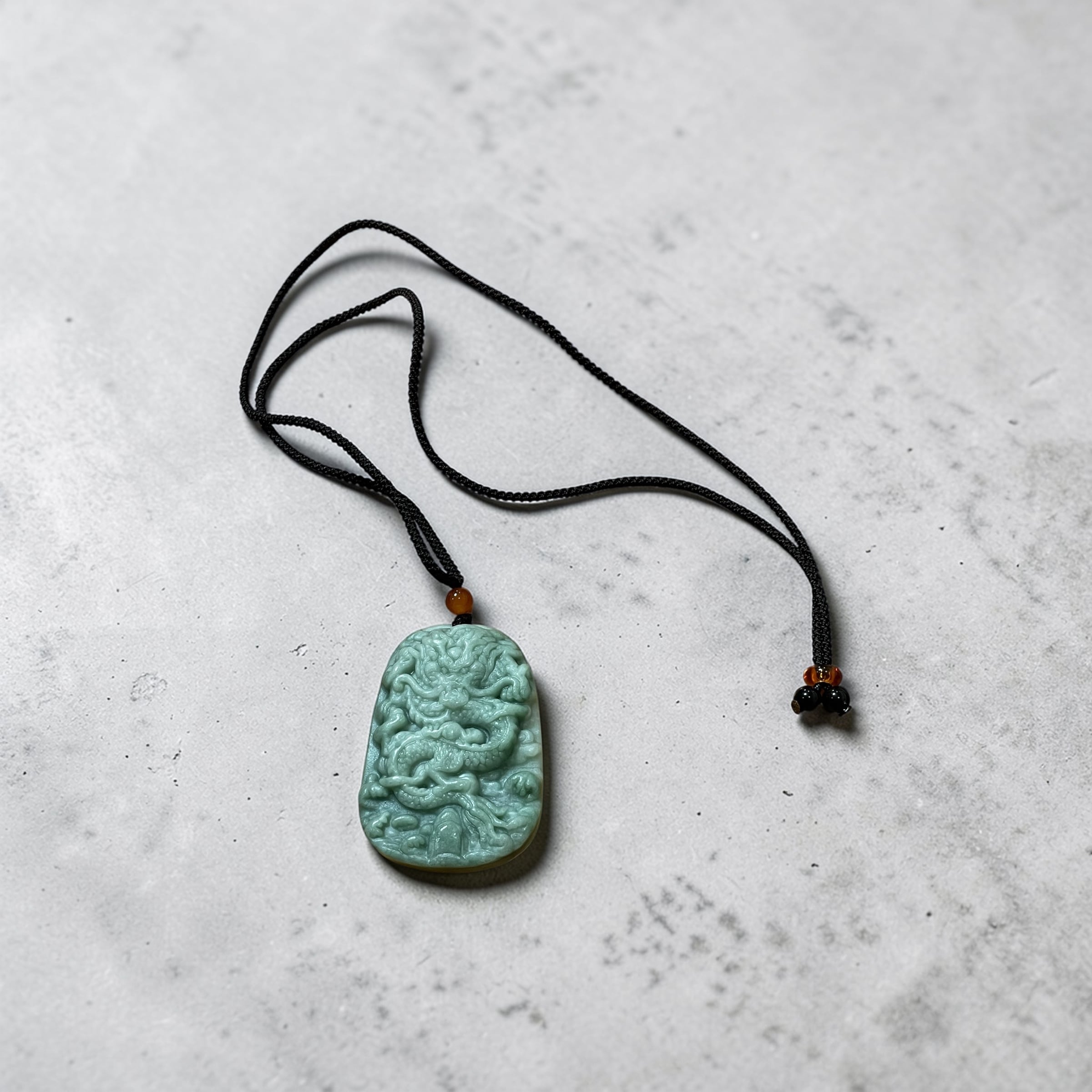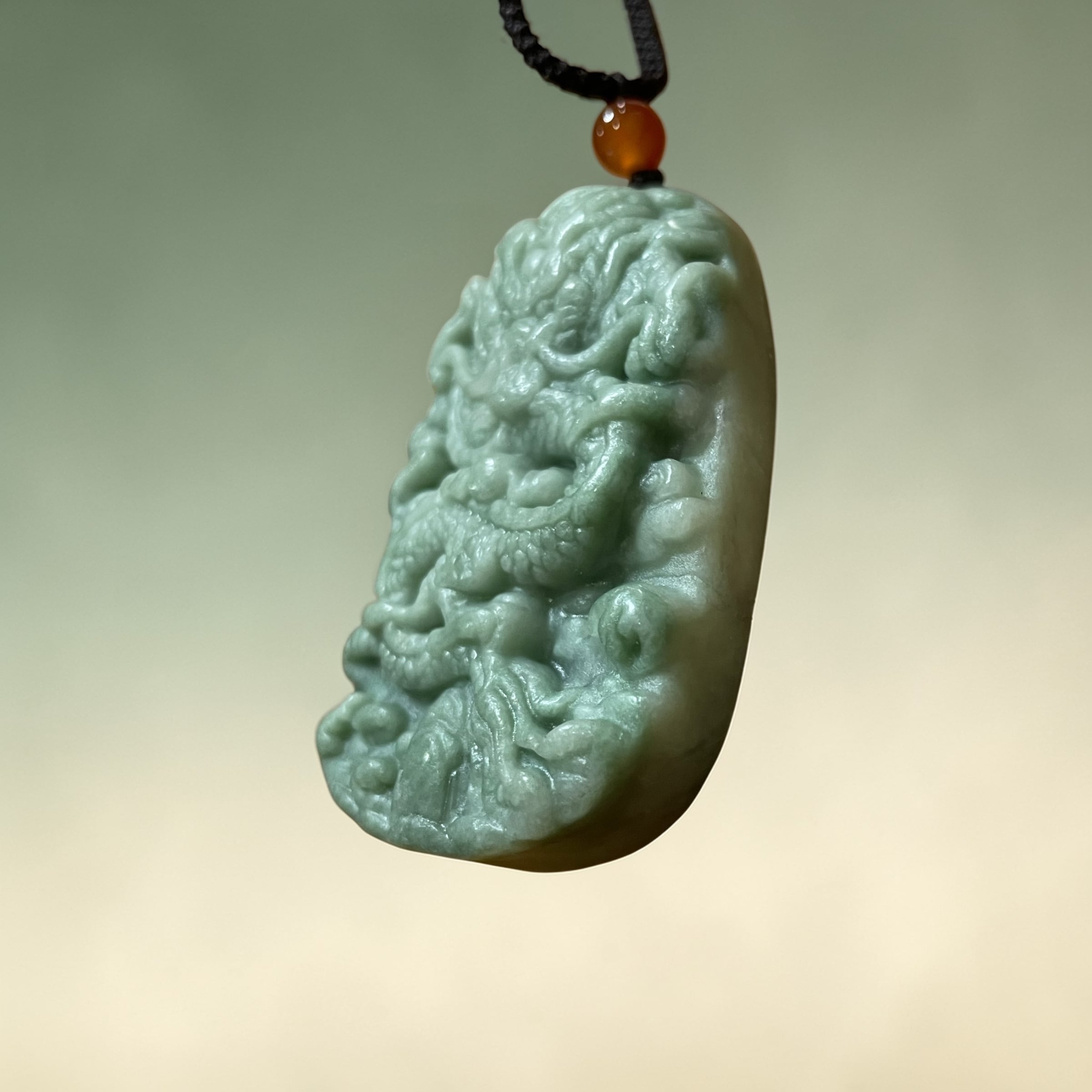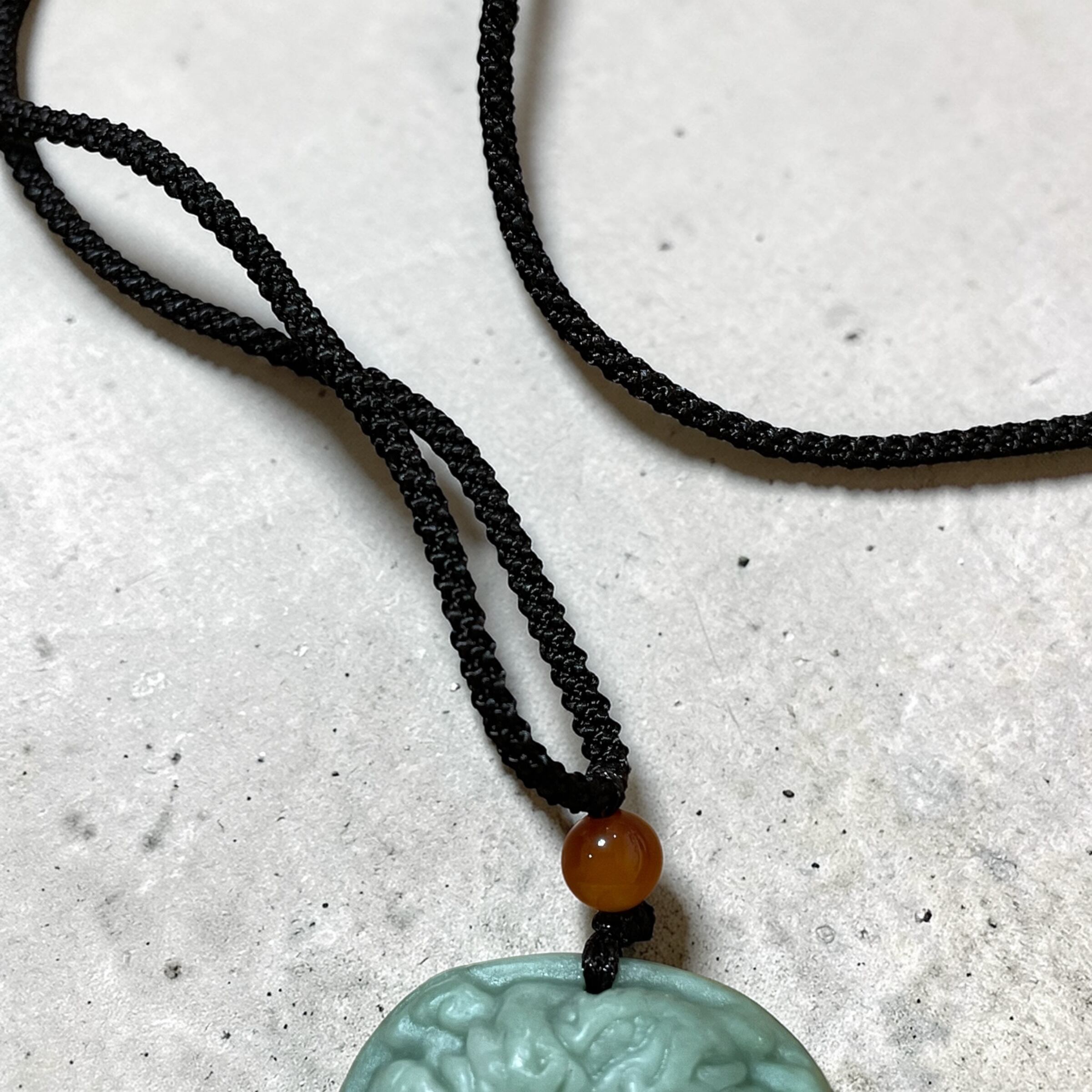 深いグリーンが美しいネフライト(軟玉)に、龍神を彫刻したネックレスです。